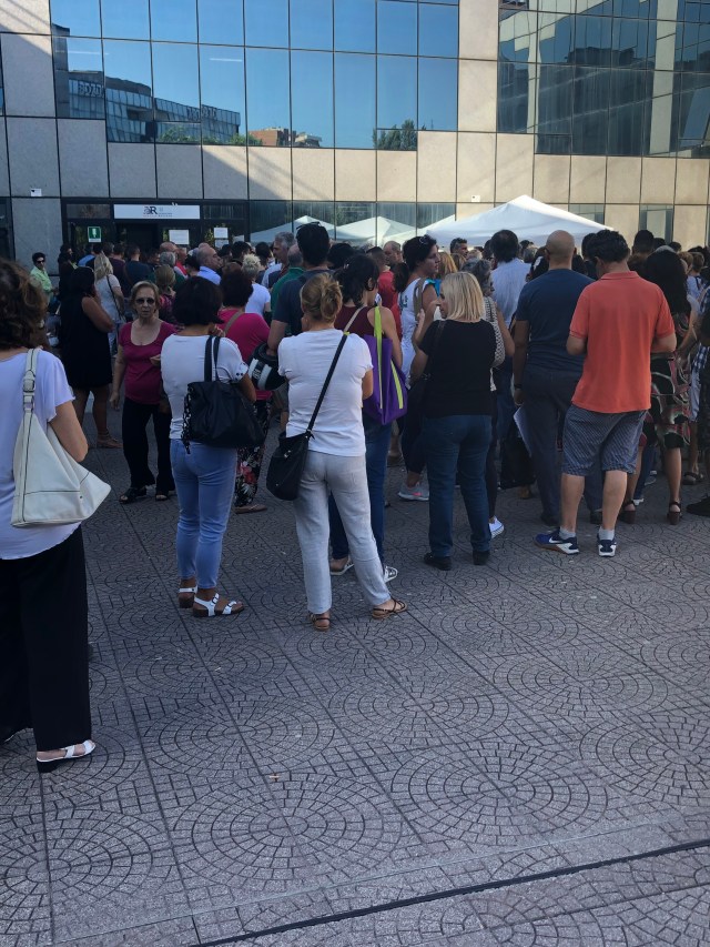 Le file per la presentazione delle domande spesso raggiungono anche le 500 persone per ogni sede (Si sono viste anche persone in attesa con sgabelli portati da casa).